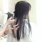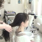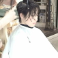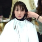 それでも無情にもカット準備は淡々と進み…綺麗な黒髪にハサミが入る…。