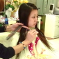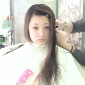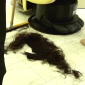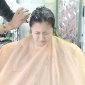 クロスが掛けられ長い髪にハサミが触れると思わず泣き出しそうな