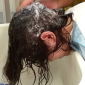 カット後間もない中、再度頭と顔にシェービングクリームを塗りたぐり