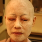 髪も眉もすべて剃り落としまるで別人のように妖艶な変貌を遂げる様子を