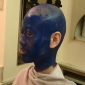 さらにツルツルになった頭と顔にブルー、ゴールドのペイントを施す。