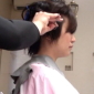 長い髪を丁寧にコーミングされ…唐突に長い髪にハサミが入る…。