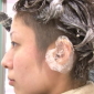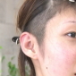 後ろから大胆に刈り上げられ思わず不安そうな表情に…。