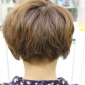 短くなった髪に緩めのパーマをあてて明るめのカラーリングで仕上げに。
