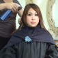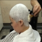 床屋での剃髪前に美容院で明るめカラーから清楚系へとイメージチェンジ。
