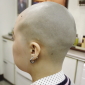 生まれたままの姿に…という思いも込めてすっぴんで床屋に来店。
